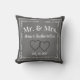 Almofada de recordações de juta cinza personalizada com monograma personalizado. Um presente de casamento perfeito para os noivos, apresentando os nomes dos noivos, inicial e data do casamento. Personalize a inicial, os nomes dos recém-casados e a data da cerimônia de casamento.