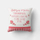 Este travesseiro cor-de-rosa e branco feminino bonito é feito com um quadro inferior das bolinhas e da listra com detalhes florais. Estas flores cor-de-rosa pequenas bonitas com folhas verdes moldam o stats do nascimento da sua criança. Pode ser personalizado com nome, data de nascimento, tempo do nascimento, peso e comprimento da sua criança no nascimento. Ordem hoje.