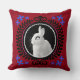 A strange white bunny to keep you company. The bunny faces to the right. There is a separate listing for bunny facing to the left. The main color in the front of this throw pillow is dark red with blue flowers with pink centers. The back of the pillow is diamond checkered in blue, dark red, pink, and black. **** Please note that due to differences in computer monitor and device settings, the colors on the actual physical product may not be an exact match to what you see on your screen.**** Thank you for looking! Peace, love, and light <3****