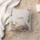 O design apresenta um grupo de adoráveis amigos florestais (veados, ursos, guaxinim, raposa, coruja) e verde-aquarela.