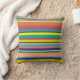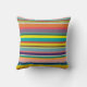 Este travesseiro decorativo tem um design de faixas horizontais em tons de azul, verde, marrom, roxo, vermelho, amarelo, laranja e rosa.