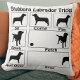 Travesseiro decorativo/almofada entusiasmada do cão labrador que resgata o osso de Ricaso - desenhada a preto e branco