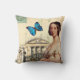 Um belo retrato vintage da jovem Rainha Vitória, aliado a uma borboleta azul brilhante, colocada sobre um fundo constituído por uma fotografia do Palácio de Buckingham e um cartão postal vintage. © Julie McIver/Wickely Lovely