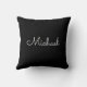 Travesseiro decorativo de Tipografia Branca Preta do Nome de Script Personalizado Elegante Moderno Modelo.