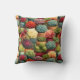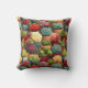 Travesseiro decorador com suculentos coloridos em potes de terracota.