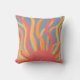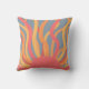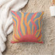 Este travesseiro decorativo tem uma design natural de um nascer do sol feito de linhas curvas em vermelho, amarelo e laranja, um sol, e o céu.