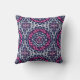 Sudoeste / Aztec inspirou o travesseiro decorativo batik têxtil design num padrão de discagem por sol / mandala - marinho / indigo azul e branco, acentuado com cor-de-rosa fuchsia profunda