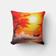 Este travesseiro tem um veleiro no pôr do sol.