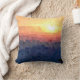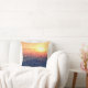 Acrescente um toque de calor de verão à decoração de sua casa com este travesseiro que apresenta uma ilustração única de efeito de vidro manchado de um pôr do sol sobre o Lac du Bourget na França.
