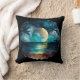 Uma pintura decorativa de paisagem aquática de uma praia tropical com palmeiras após o pôr do sol.