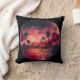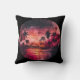 Uma pintura decorativa de paisagem aquática de uma praia com palmeiras após o pôr do sol.