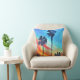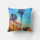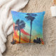 Praia do pôr do sol com palmeiras arte original de Sacha Grossel. A arte do tema da praia, sonhadora do pôr do sol vermelho e laranja no estilo original de aquarela. Tema do pôr do sol do surf.