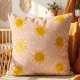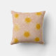 A warm and playful throw pillow featuring a repeating watercolor sun pattern.