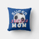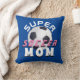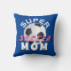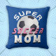 Blue Super Soccer Mamãe esportes o Travesseiro do Dia da Mãe. O design tem uma tipografia moderna, rosa e branca, sobre fundo azul com uma bola de futebol. presente de excelente para uma mãe desportiva ativa que adora futebol.