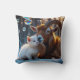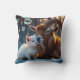 Uma cabra gentil e de coroa longa compartilha um momento delicado com um pequeno gatinho branco numa floresta nevada, cercado por bolhas cintilantes. Uma bela representação de amizade inesperada e magia de inverno.