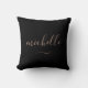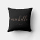 Travesseiro preto e ouro moderno. Nome personalizado do script e trava em cada lado.