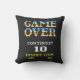 The design features massive, pixelated "GAME OVER" typography with a classic blue-to-gold metallic gradient, mimicking the look of 90s arcade cabinets. Centered below is the iconic prompt "CONTINUE?" followed by a bold white "10" second countdown timer.