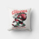The design features a cool, dynamic Santa Claus wearing a big suit, rolling forward on a skateboard while balancing a huge sack overflowing with presents. The illustration uses a bold, classic style with prominent red and white coloring. The phrase "Merry Christmas" arches above the action, and the fun tagline "Santa Skates Through Christmas!" sits below, making this the perfect piece for skaters, snowboarders, cool teens, or anyone looking for a non-traditional, humorous Christmas shirt.