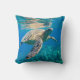 Fotografia subaquática de uma tartaruga marinha nadando em água cristalina logo abaixo da superfície.