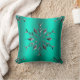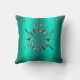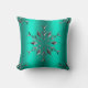 Um travesseiro decorativo de Natal de na moda com uma grande estrela de Natal metálica prateada (ou floco de neve) em um bonito fundo aqua (ou lacre), para adicionar um toque de designer à sua decoração de Natal para a casa para as férias.