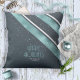Parte de um conjunto de design coordenadores para o Natal, este travesseiro decorativo apresenta faixas diagonais em tons de azul de relógio, preto e branco. Foi fornecido o texto "Feriados Felizes" opcional e um rótulo para adicionar o seu nome e/ou outro texto. Procure ID861 a ID864 para ver opções de cores adicionais e outros produtos neste conjunto de design de Natal moderno.