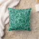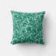 Almofada de decoração com um padrão damasco vintage de William Morris com flores de cardo e folhas, em azul turquesa / azul pavão, sobre um fundo aqua claro, digitalmente realçado e colorido