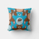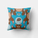 O Cute Teddy suporta um padrão sem costura de esselação com um urso central azul com monograma. Travesseiro quadrado personalizável para criança. Desenhado por René Bui. Não se esqueça da coleção inteira.