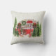 Um travesseiro com um tema de Natal bonito e caprichoso. Um trailer aconchegante decorado para o sorteio de Natal entre alguns pinheiros.