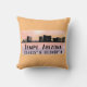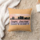 Travesseiro decorativo apresenta a silhueta de linha do horizonte da cidade Tempe AZ com abertura de cor d'água e coordenadas de mapa de latitude e longitude