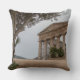 Coxim do travesseiro decorativo da foto com as ruínas do templo do grego clássico em Segesta, Sicília em Italia vista de debaixo de uma oliveira velha em um dia nebuloso.