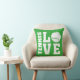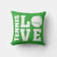 Almofada de tênis verde AMOR POR TÊNIS. Tenistas vão adorar esta confortável almofada de tênis! Esta almofada de tênis tem um tema de amor com as palavras TÊNIS e AMOR em letras brancas em negrito. Uma bola de tênis serve como a letra O, dando a este design um verdadeiro tema de tênis. No verso desta almofada está o mesmo design de Amor pelo Tênis, mas impresso como uma fantástica estampa geral. Esta confortável almofada fica ótima em qualquer cadeira e mostrará a todos que você tem um amor ardente por tênis. Mais presentes e mercadorias divertidas com tema de tênis disponíveis na loja STAND UP AND CHEER!