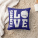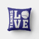 Almofada Tênis de TÊNIS azul. Os jogadores de tênis adorarão esta almofada de Tênis confortável! Esta almofada de Tênis tem um tema Amor com as palavras TÊNIS e AMOR em letras brancas em negrito. Uma bola de tênis serve para a letra O dando a este design um tema de tênis. Na parte de trás desta almofada está o mesmo Tênis Love design, mas impresso como um fantástico por todo o impressão. Esta almofada confortável parece excelente em qualquer cadeira e mostrará a todos que você tem um amor ardente por Tênis. Mais presentes e mercadorias de temas Tênis disponíveis na loja STAND UP AND CHEER!