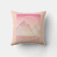 Travesseiro com uma bela ilustração encantadora. Pastel de cor rosa e pêssego. Paisagem com planetas, montanhas e nuvens.