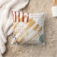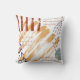 Um travesseiro decorativo ousado com um design moderno abstrato com pinceladas e marcas de caneta em tons de azul e terracota e areia.