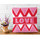 Adicione uma pop ousada de amor a sua casa com este vibrante travesseiro decorativo rosa e vermelho! Apresentando um design geométrico retrógrado e letras grandes em bloco soletrando "AMOR", esta acolhedora peça de sotaque é perfeita para Dia de os namorados, aniversários, ou apenas porque. Personalize o texto para torná-lo seu - seja o nome, um encontro ou uma frase favorita! Uma adição divertida e sincera a qualquer sofá, cama ou lista de presentes.