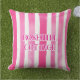 Travesseiros de Paciência - listras rosa-quente com texto editável. Excelente para casacos à beira-mar, condomínios, cabanas de praia ou apenas no seu próprio jardim. Limpar texto se não for necessário.