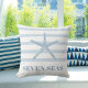 Almofada Texto litorâneo das listras azuis-claras