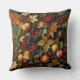 This throw pillow is covered with the image of autumn leaves, red and purple berries, apples, and twigs.