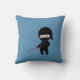 Ninja de desenho animado, bonito mas zangado, vestido de preto, está segurando uma tradicional espada japonesa de katana.