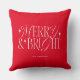 Travesseiro clássico e natal vintage com texto de tipografia que diz "Feliz e Brilho" com estrelas.