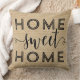 O estilo rústico moderno "Home Sweet Home", o travesseiro inicial / sotaque apresenta texto preto na moda e faixas em negrito no lado oposto. Fundo impresso em burlap.