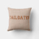 O travesseiro decorativo do tema de futebol apresenta "Tailgater" em uma fonte de futebol marrom angustiada em fundo de burlap. Perfeito para cavernas de homem