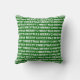 Travesseiro decorativo de tipografia feliz de Natal branco sobre padrão verde escuro. Personalize a cor de fundo entre outras opções de uma forma fácil.