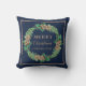 "Typografia de Script Dourado do Rosa Marinho Feliz Decor Doméstico do Travesseiro decorativo de Natal." A coroa de natal elegante, aquosa, com pínus cones, folhas sagradas e bagas com folhagem de floresta foi criada por Audrey Jeanne Roberts, uma artista internacionalmente conhecida e licenciada. A inscrição foi transformada em um olhar brilhante rosa dourado que tem uma sensação dimensional. O fundo azul do marinho pode ser alterado. Direitos autorais.
