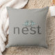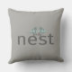 A tipografia cinzenta simples com "nosso ninho" no travesseiro decorativo com dois modelou pássaros. A cor do fundo pode ser mudada para combinar seus decoração e estilo. Design pela vida simples.
