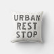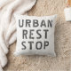 "Urban rest Stop", citação engraçada no estilo de estêncil verde de cinza escura em fundo branco