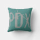 Travesseiro decorativo apresenta PDX - abreviação do aeroporto para Portland International Airport, Portland, Oregon. Texto de cinzas urbanas Grungy sobre fundo de chá