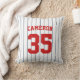 A camiseta de basebol estimula o travesseiro decorativo de estilo com cores totalmente personalizáveis. Para alterar a cor do plano de fundo, clique em personalizar e altere o plano de fundo da parte frontal e da parte traseira. Para alterar as cores das listras, clique em personalizar, selecione a camada ThinStripes1 para os lados frontal e traseiro e altere a cor do preenchimento. travesseiros decorativos perfeitos para a sala de mídia ou quarto de um fã de beisebol.