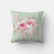 O design bonito e feminino apresenta grandes buquês com rosas cor-de-rosa e outras flores e folhas sobre fundo de hortelã em apuros e listras rosa pálidas.