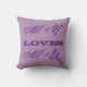 Um travesseiro decorativo doce da tipografia com texto roxo em um lado que diz "todo o mim amores você" e em um coração floral bonito com flores roxas e a palavra "para sempre" no lado oposto. © 2015 - SmudgeArt/Madeline M Allen